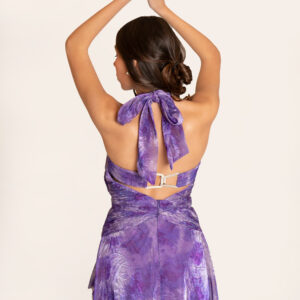 Lilac Lavender detail chiffon floor long dress with an open tie back.