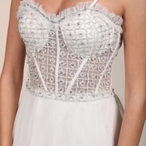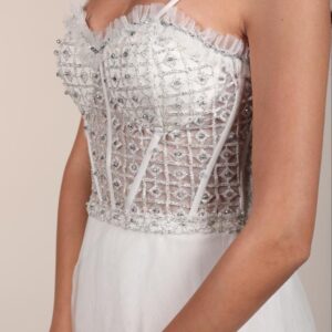 Wishlist Please, enable Wishlist.White rope strap, embroidered bodice with bead embellished waist trim with skirt frilly tulle fabric