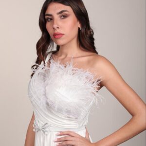 Stella Dress is one shoulder sleeveless pleated long white dress from the vintage satin fabric.
